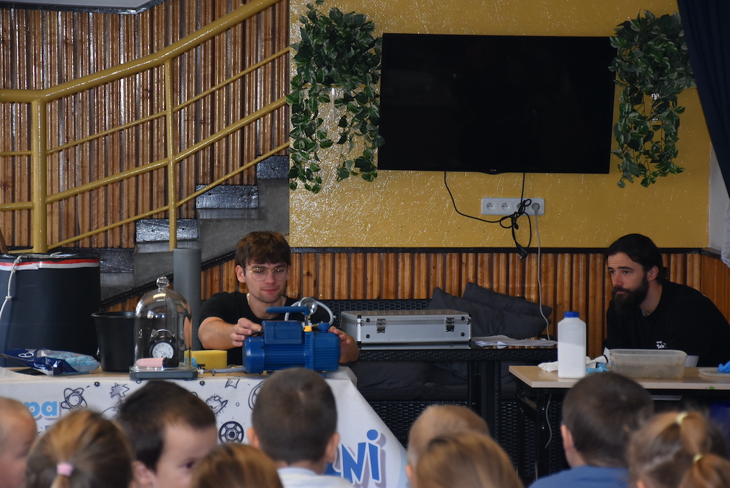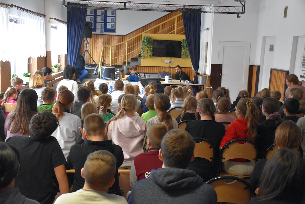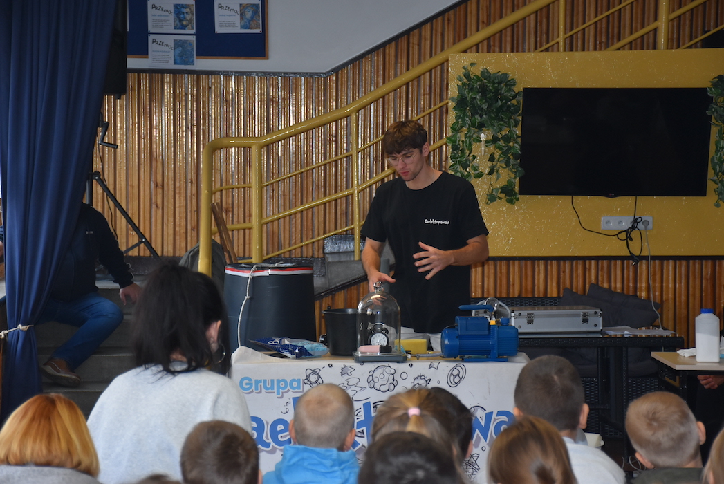W trakcie występu uczniowie mogli zobaczyć efektowne doświadczenia naukowe. Całość była prowadzona w bardzo przystępny, a zarazem humorystyczny sposób, co sprawiło, że pokaz nie tylko bawił, ale i uczył.