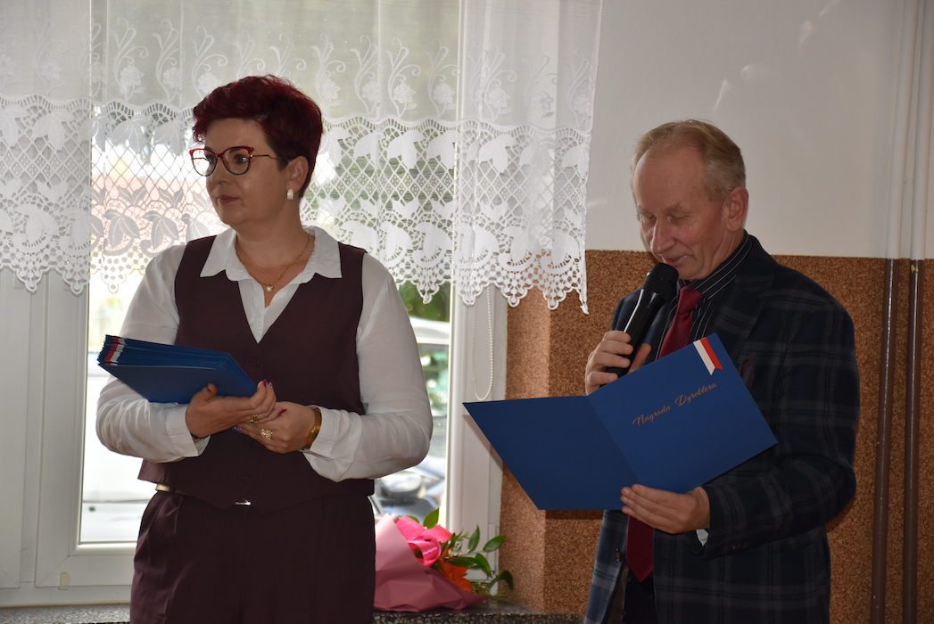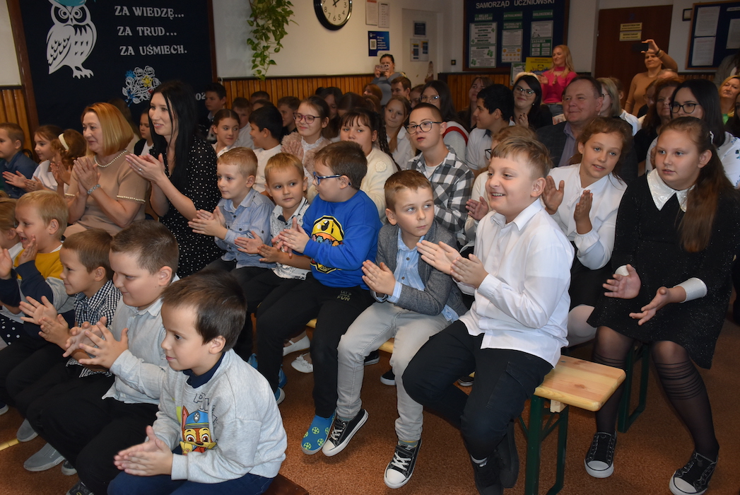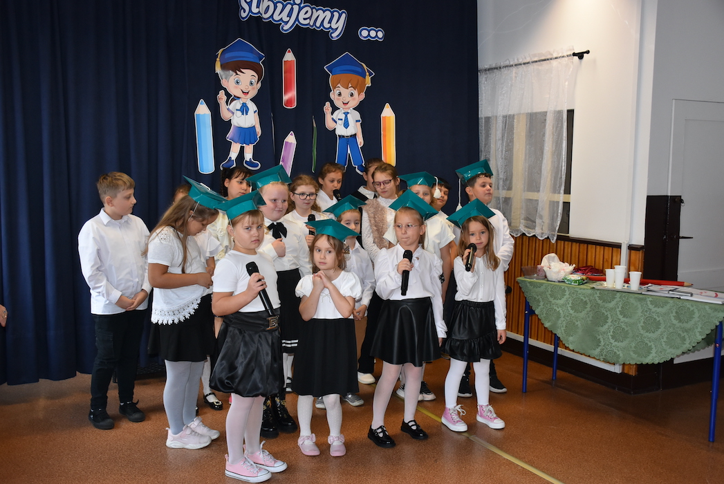 Uroczystość zakończyła się uczczeniem Dnia Edukacji Narodowej – były życzenia, piosenka, nagrody dla nauczycieli, wręczone przez pana Dyrektora oraz słodki finał w postaci tortu od Rady Rodziców dla całego grona pedagogicznego.