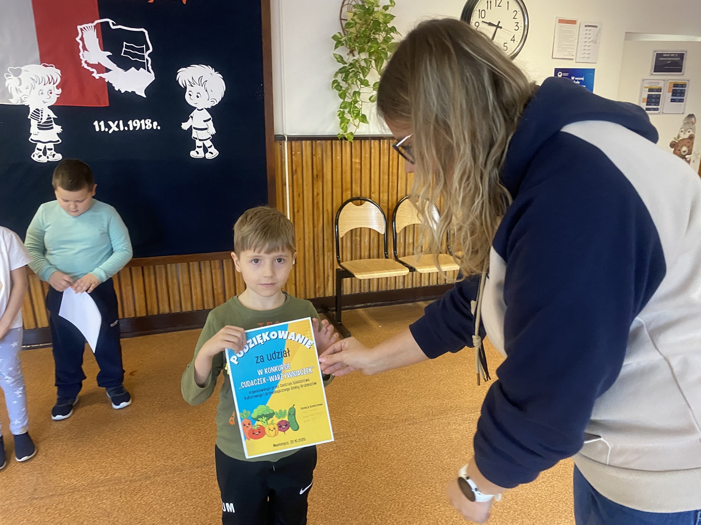 W dniu dzisiejszym w naszej szkole odbyło się uroczyste wręczenie nagród i dyplomów za udział w konkursie „Cudaczek Warzywniaczek”, zorganizowanym przez Centrum Dziedzictwa Kulturowego i Archeologicznego Gminy Hrubieszów.