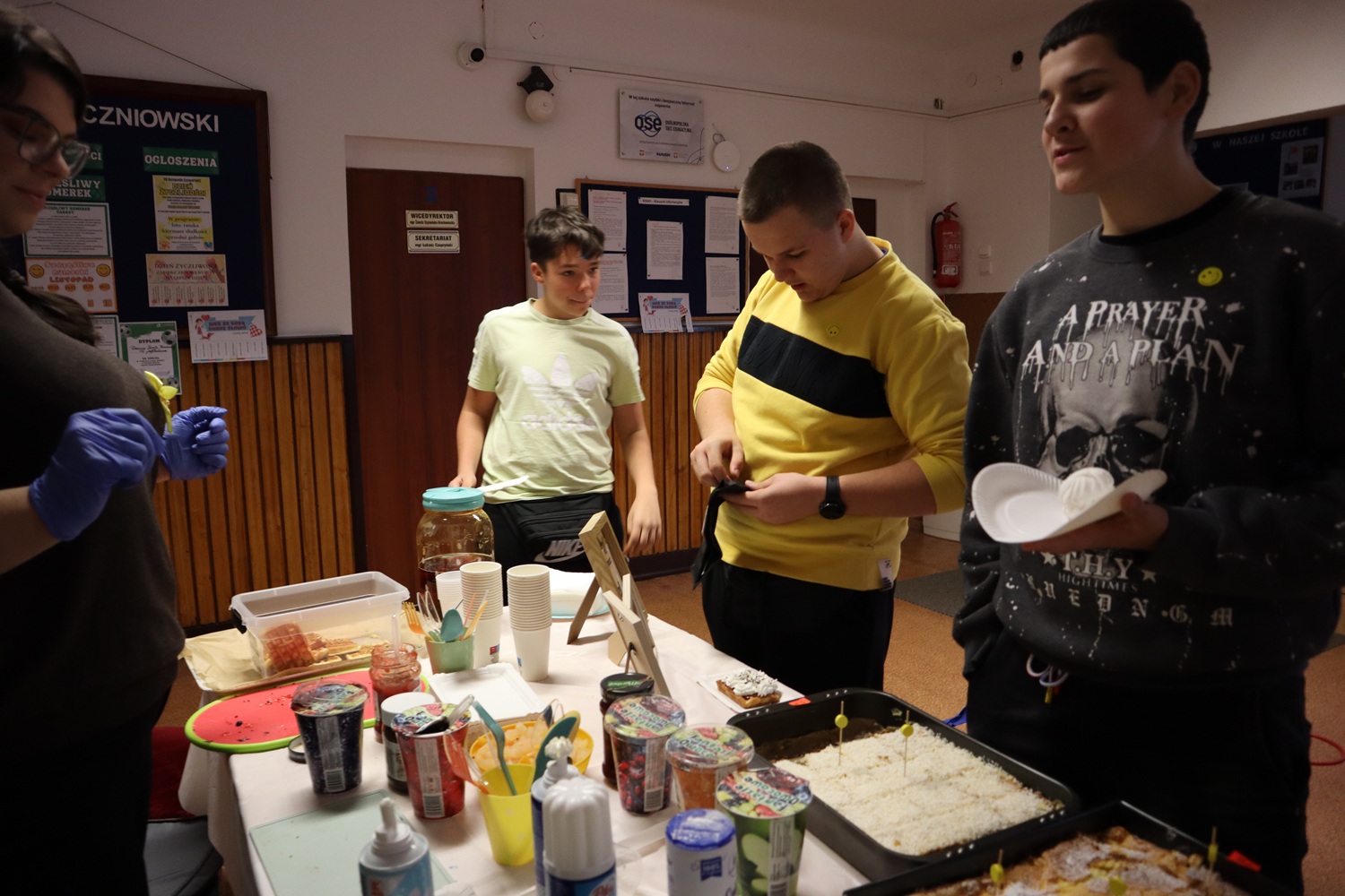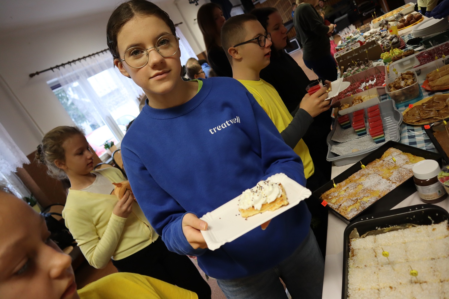 Sprzedażą słodkości zajmowały się uczennice z Samorządu Uczniowskiego, które z uśmiechem obsługiwały gości i dbały o przyjazną atmosferę. Całkowity dochód