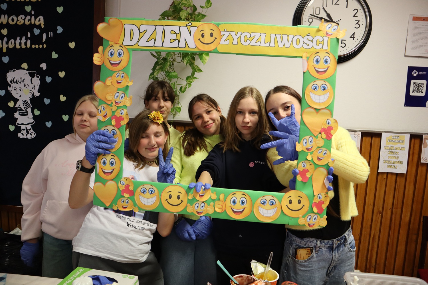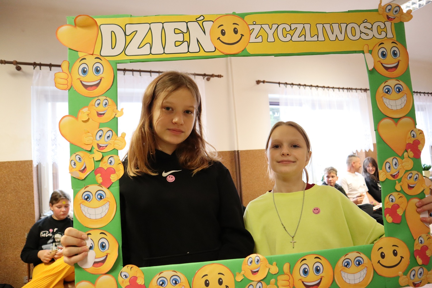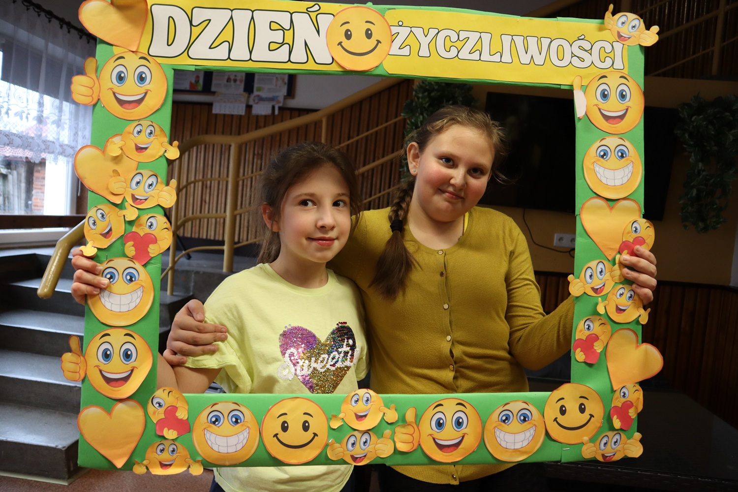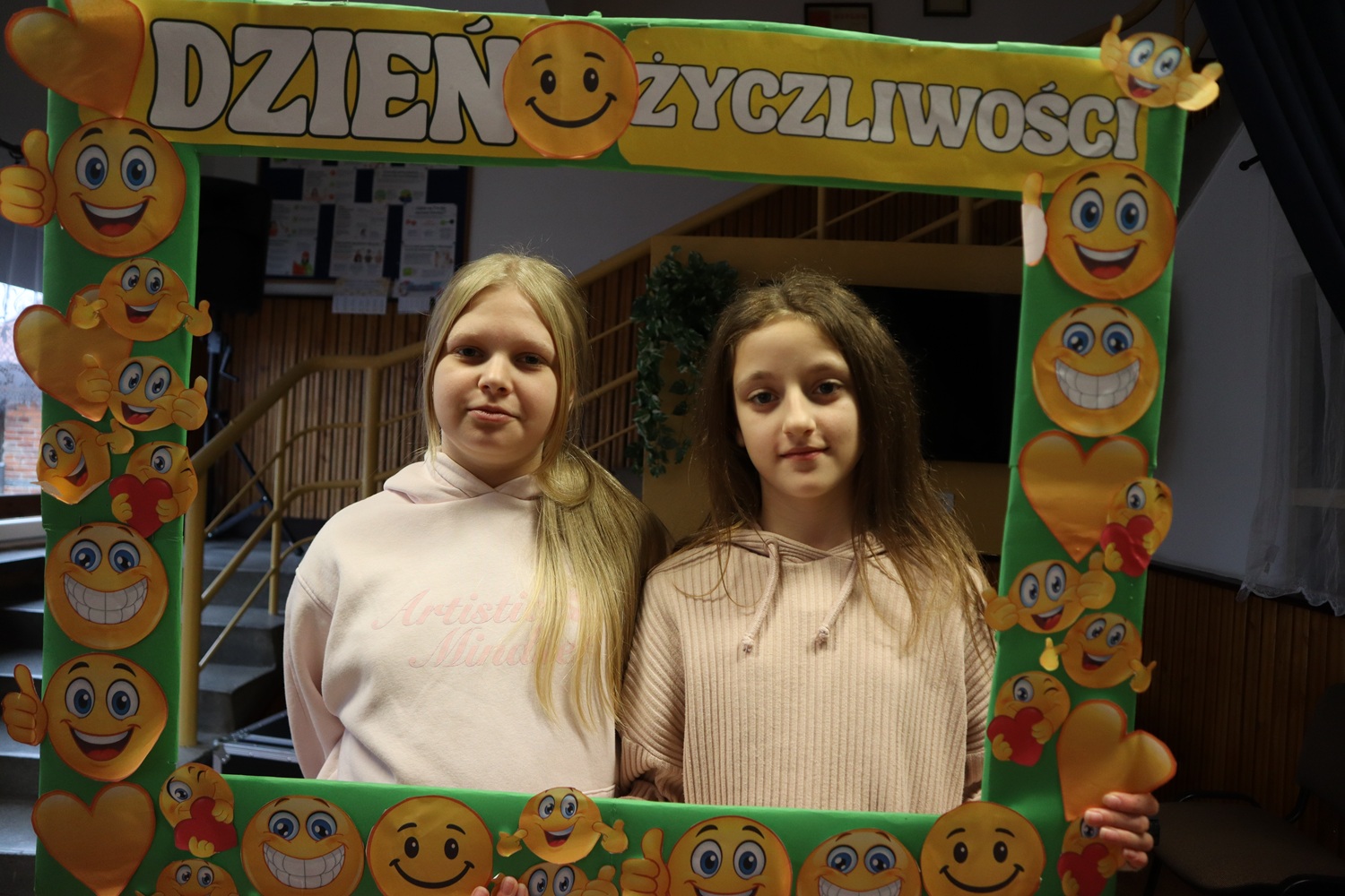 W ramach Dnia Życzliwości uczennice z SU rozdawały także uśmiechy w formie naklejek oraz pozytywne karteczki z miłymi słowami, przypominając, że jeden mały gest może odmienić czyjś dzień. Dużym zainteresowaniem cieszyła się również foto-ramka, przy której powstawały radosne, pełne życzliwości zdjęcia.
