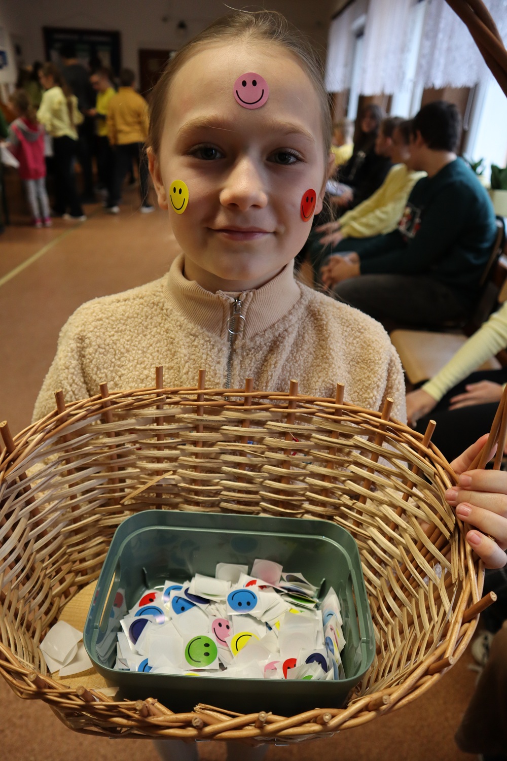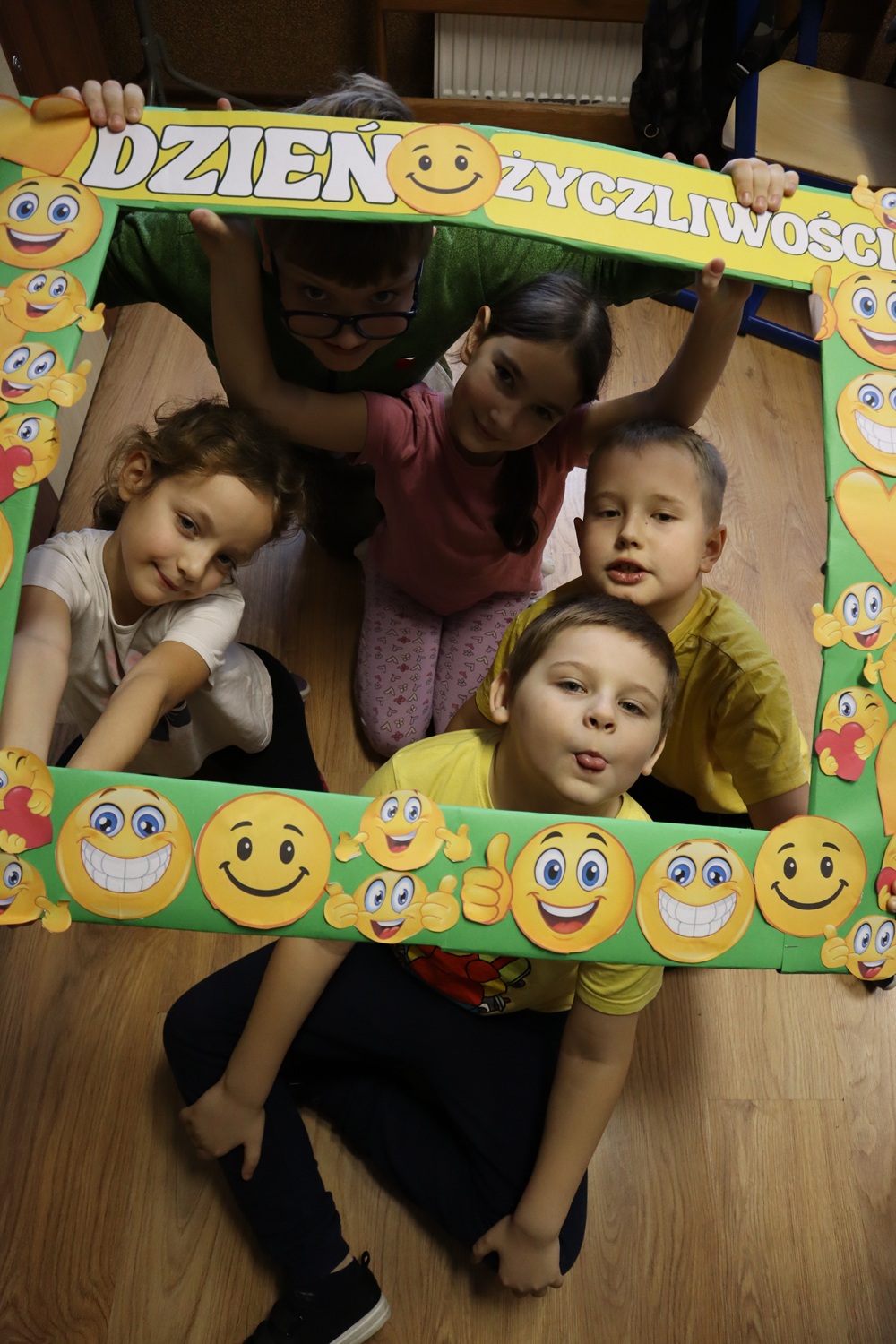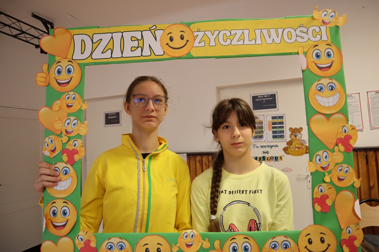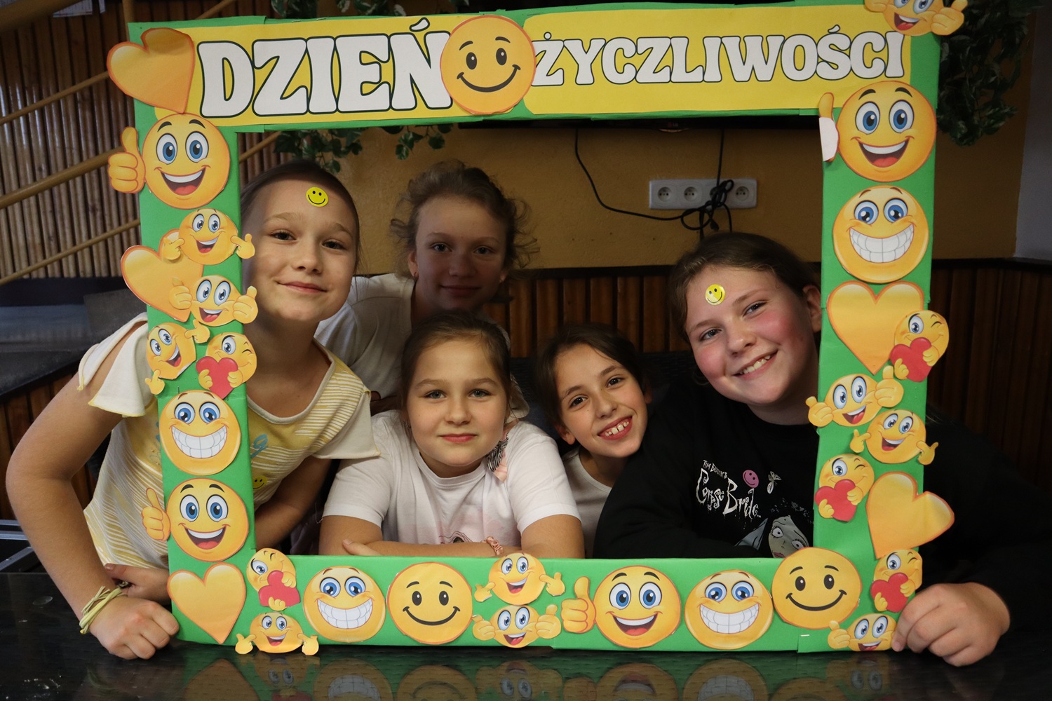 W ramach Dnia Życzliwości uczennice z SU rozdawały także uśmiechy w formie naklejek oraz pozytywne karteczki z miłymi słowami, przypominając, że jeden mały gest może odmienić czyjś dzień. Dużym zainteresowaniem cieszyła się również foto-ramka, przy której powstawały radosne, pełne życzliwości zdjęcia.