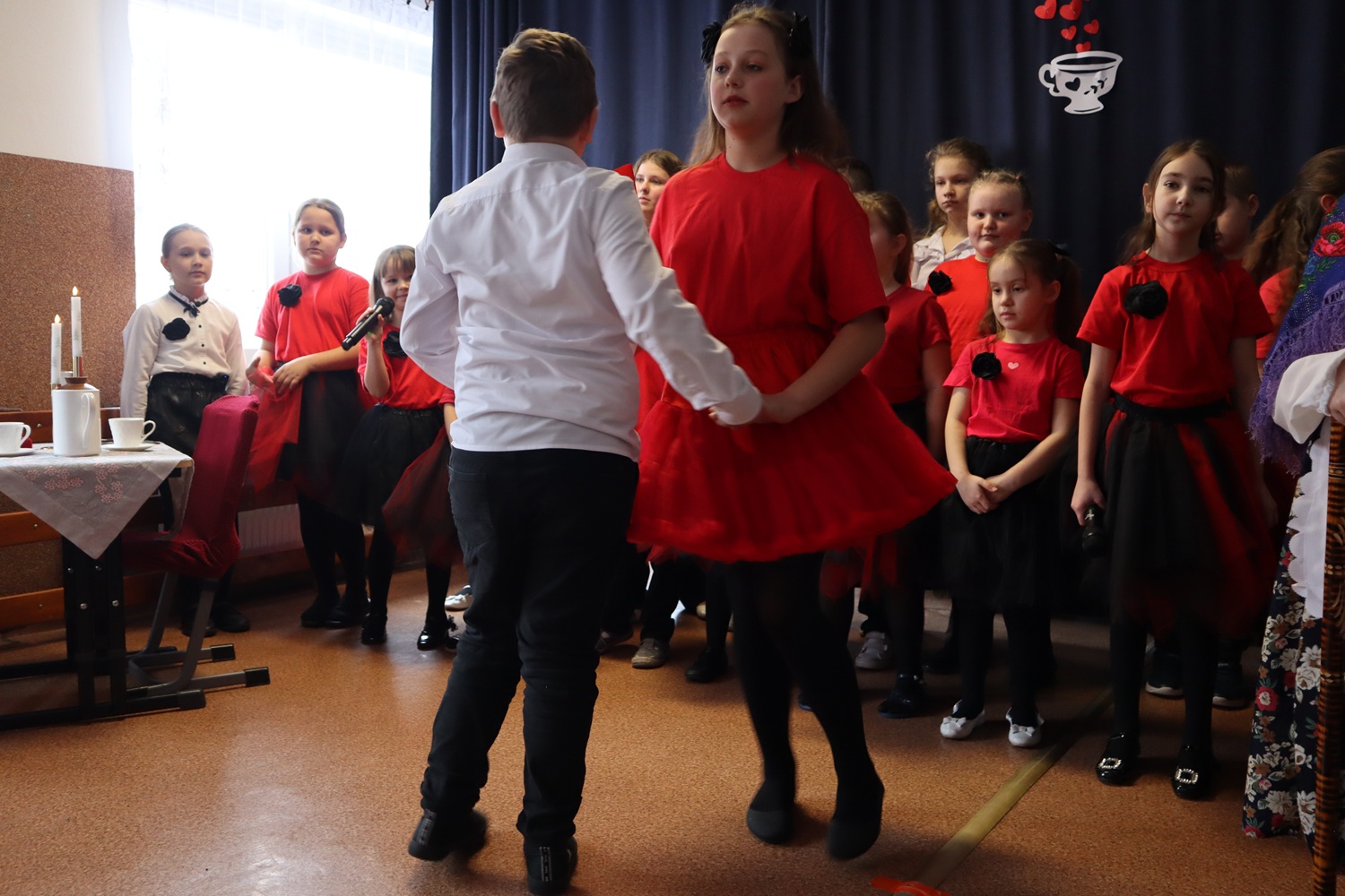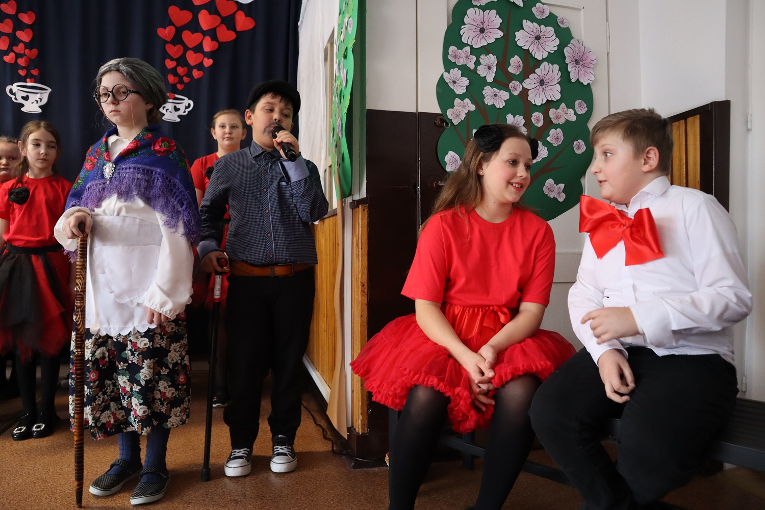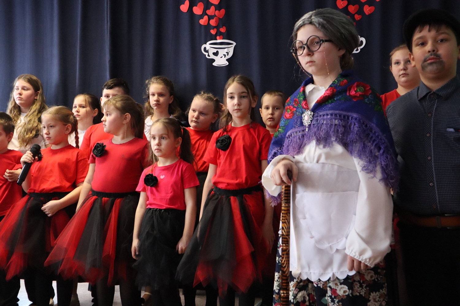 Uroczystość rozpoczęła się serdecznym powitaniem gości.  Następnie dzieci zaprezentowały bogaty program artystyczny. Jednym z najciekawszych punktów programu była inscenizacja pt. „Jak babcia z dziadkiem się poznali”, która w humorystyczny, a jednocześnie wzruszający sposób ukazała historię miłości sprzed lat. Uczniowie z wielkim zaangażowaniem wcielili się w swoje role, dostarczając publiczności wiele radości i uśmiechu.