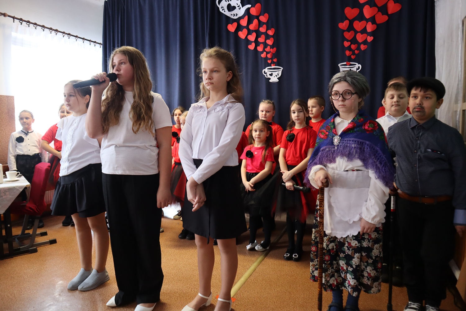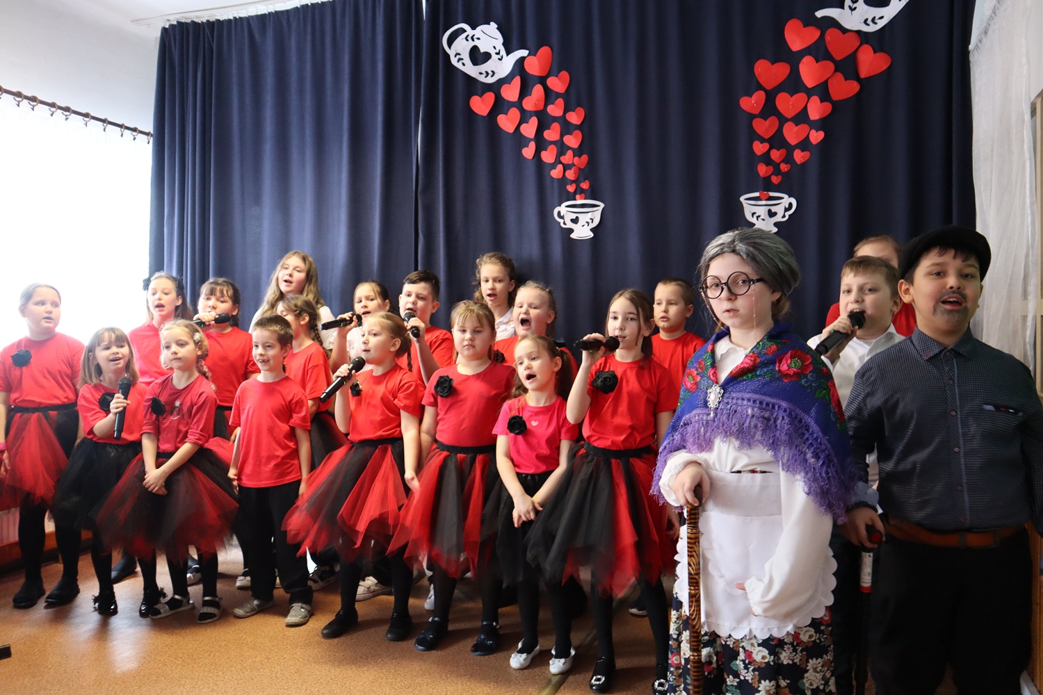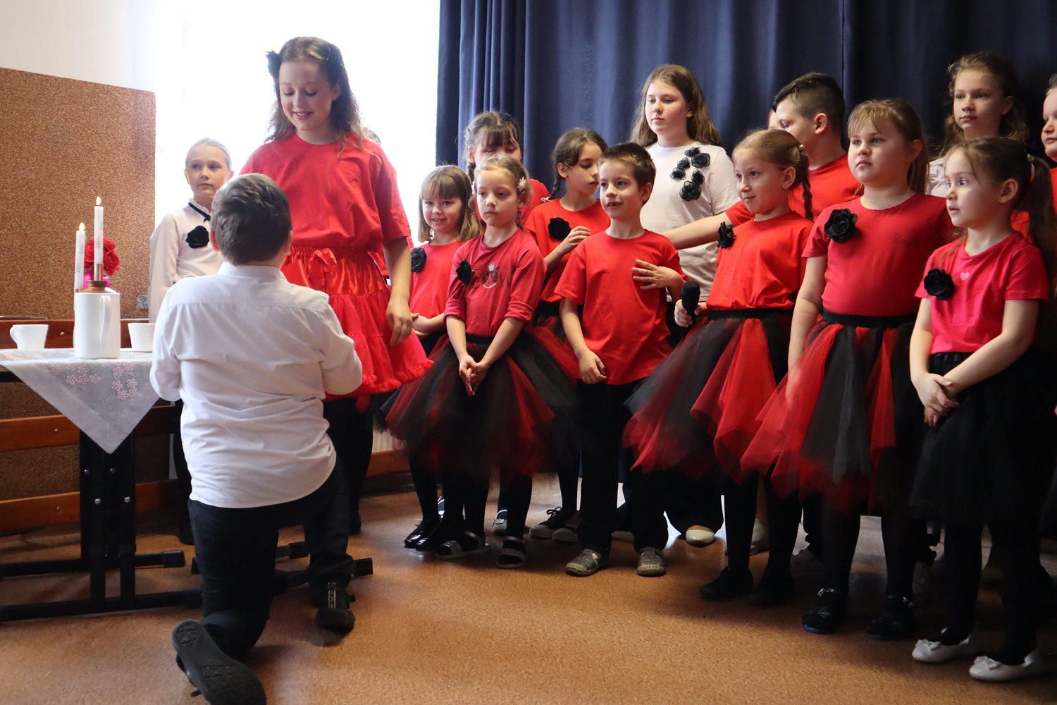 Uroczystość rozpoczęła się serdecznym powitaniem gości.  Następnie dzieci zaprezentowały bogaty program artystyczny. Jednym z najciekawszych punktów programu była inscenizacja pt. „Jak babcia z dziadkiem się poznali”, która w humorystyczny, a jednocześnie wzruszający sposób ukazała historię miłości sprzed lat. Uczniowie z wielkim zaangażowaniem wcielili się w swoje role, dostarczając publiczności wiele radości i uśmiechu.