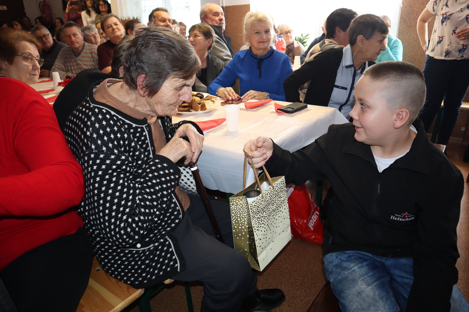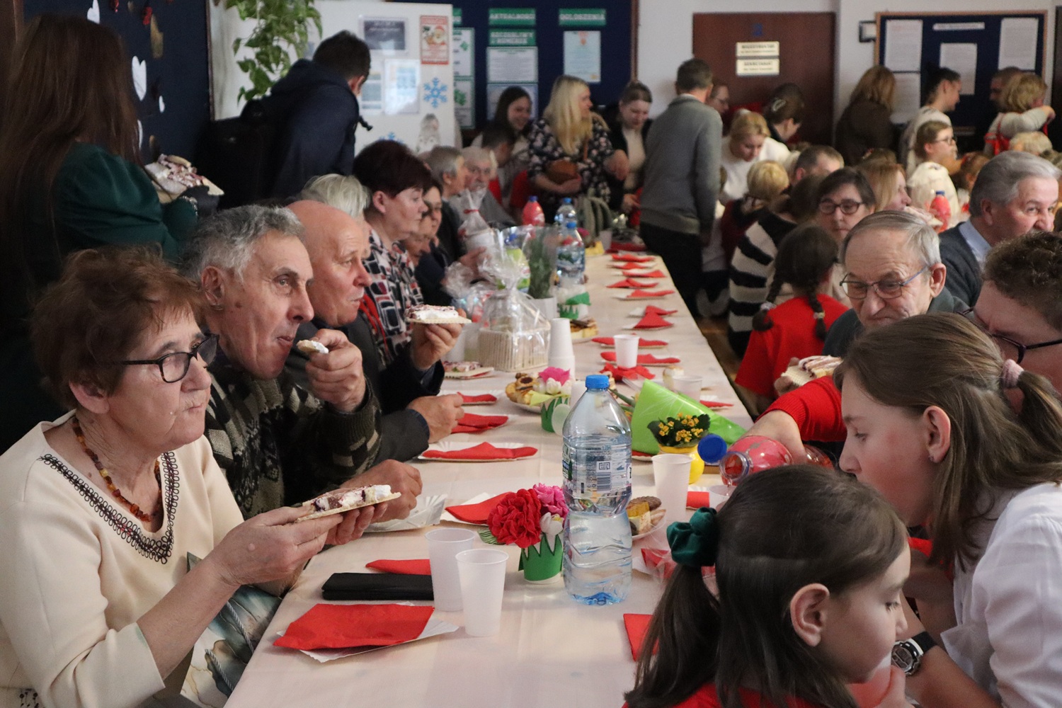 Na zakończenie uroczystości uczniowie złożyli babciom i dziadkom życzenia, wręczyli upominki oraz zaprosili na słodki poczęstunek przygotowany przez Radę Rodziców.