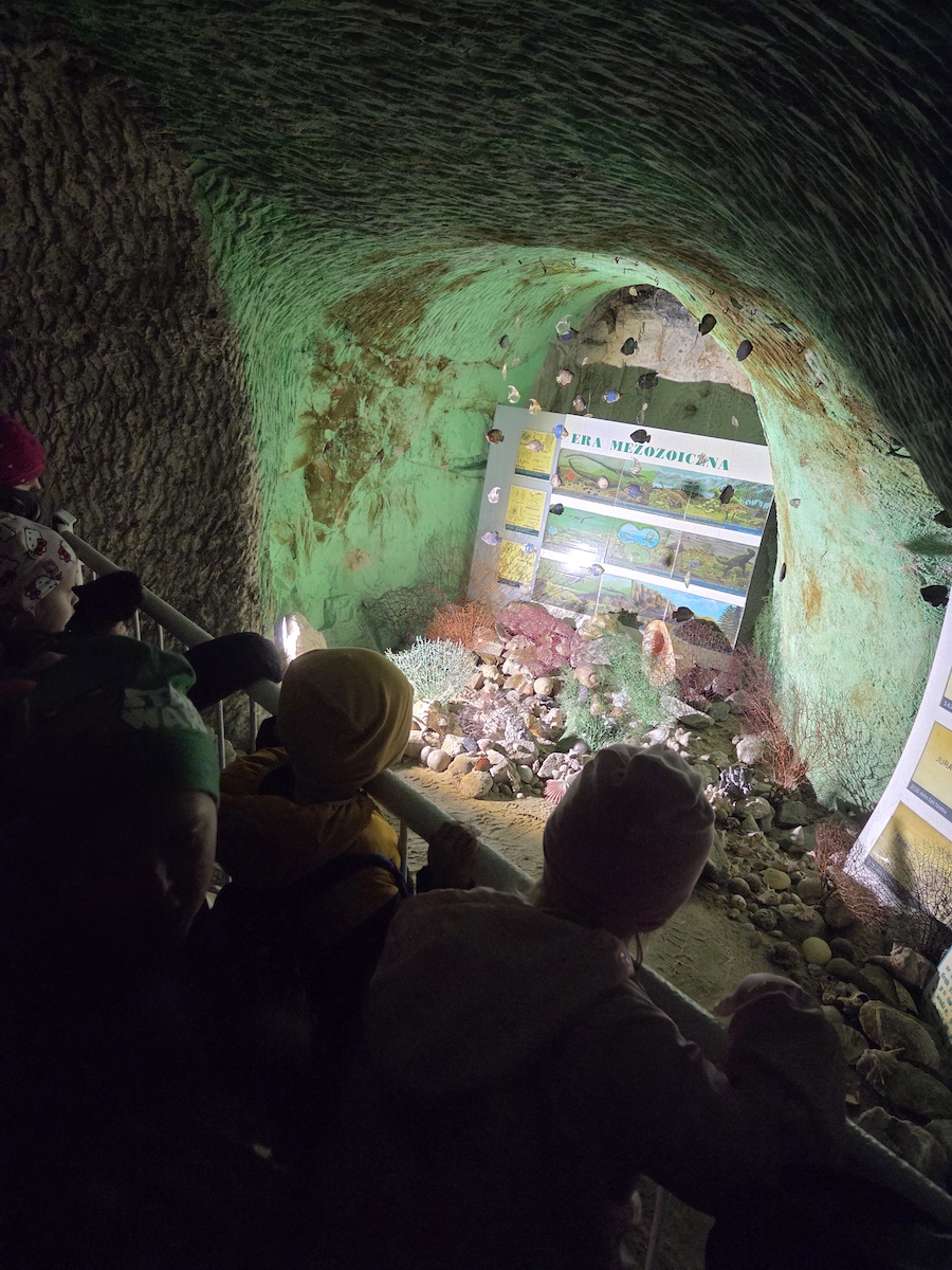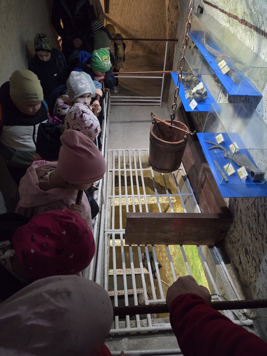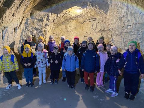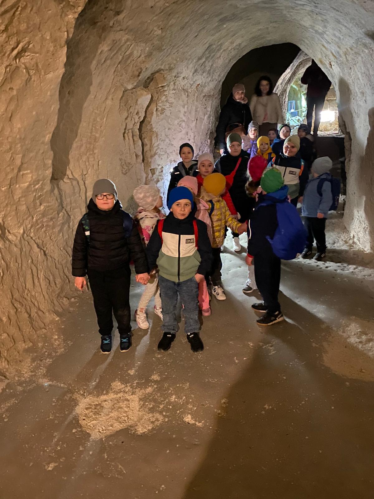 Kolejnym punktem programu było zwiedzanie podziemi kredowych w kopalni kredy „Bieluch”. Dzieci miały okazję poznać wiele ciekawostek – dowiedziały się, do czego wykorzystuje się kredę, jak wyglądał proces jej wydobycia oraz dlaczego w herbie miasta Chełm znajdują się trzy dęby i biały niedźwiedź. Ogromne emocje wzbudziło spotkanie z dobrym duchem Bieluchem, które dostarczyło wszystkim wiele radości i niezapomnianych wrażeń.