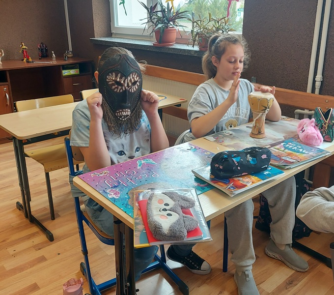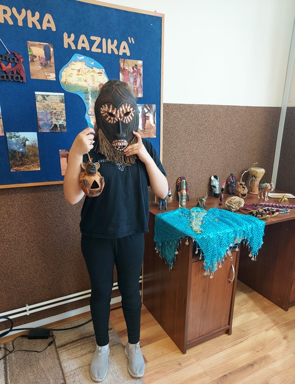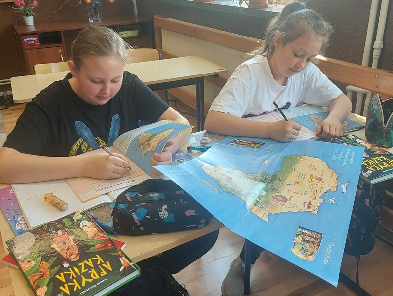 Podczas zajęć uczniowie rozwiązywali krzyżówki, które pomogły utrwalić im pojęcia. Dodatkowo kolorowali ilustracje związane z tematyką Afryki, tworzyli maski afrykańskie. Powstała także gazetka klasowa, w której znalazł się specjalny kącik poświęcony Afryce – można tam było zobaczyć maski, zwierzęta afrykańskie, piasek pochodzący z pustyni Sahary oraz stroje ludowe.